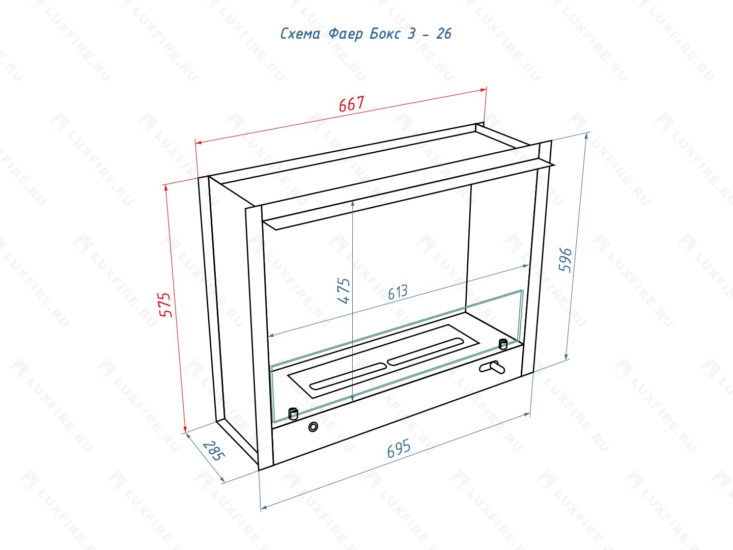 1. Портальный полуавтоматический биокамин Lux Fire «Фаер Бокс 3 — 25.6»