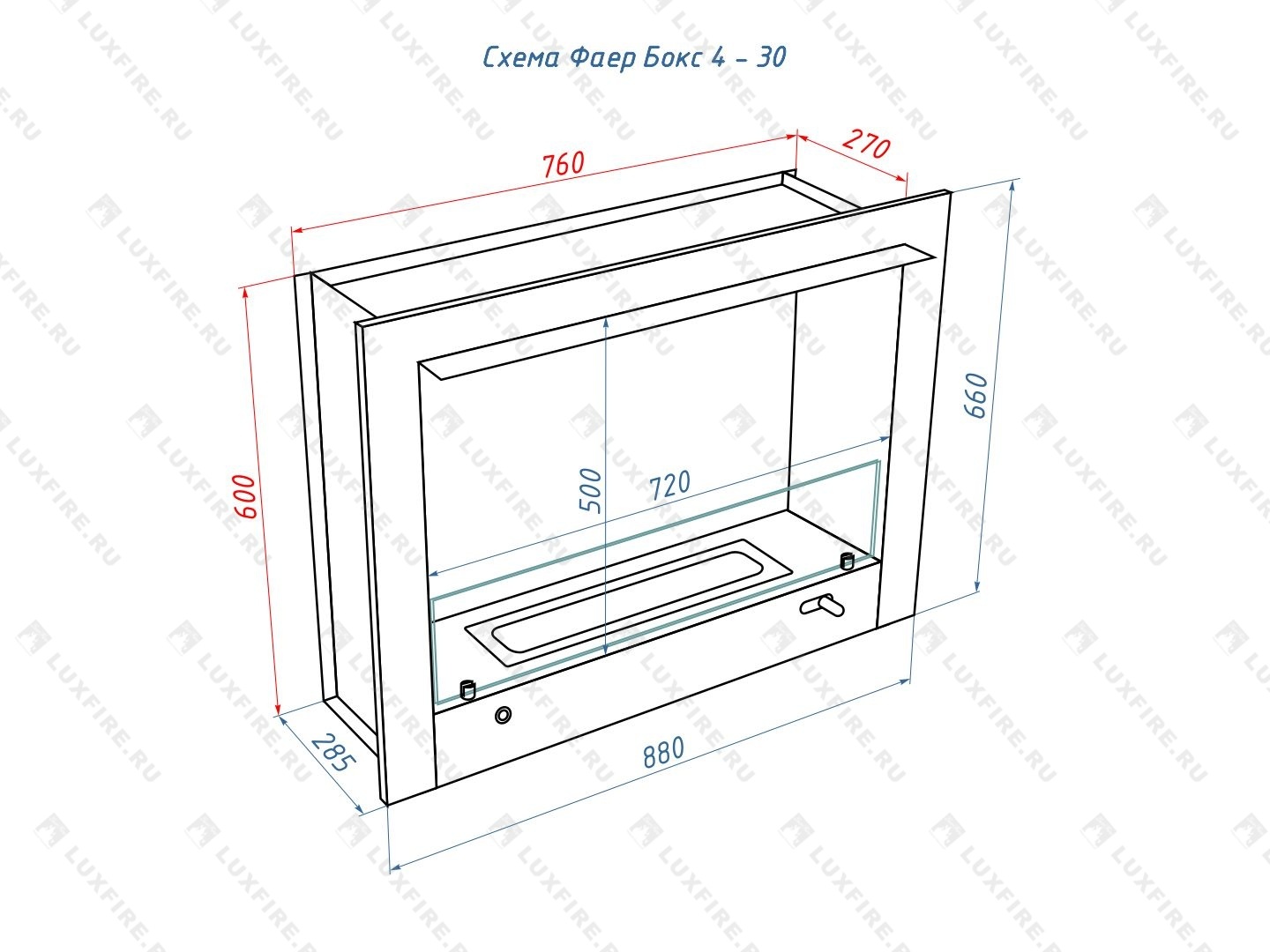 Портальный полуавтоматический биокамин Lux Fire «Фаер Бокс 4 — 30» Размеры (ВхШхГ; мм)660 х 880 х 285