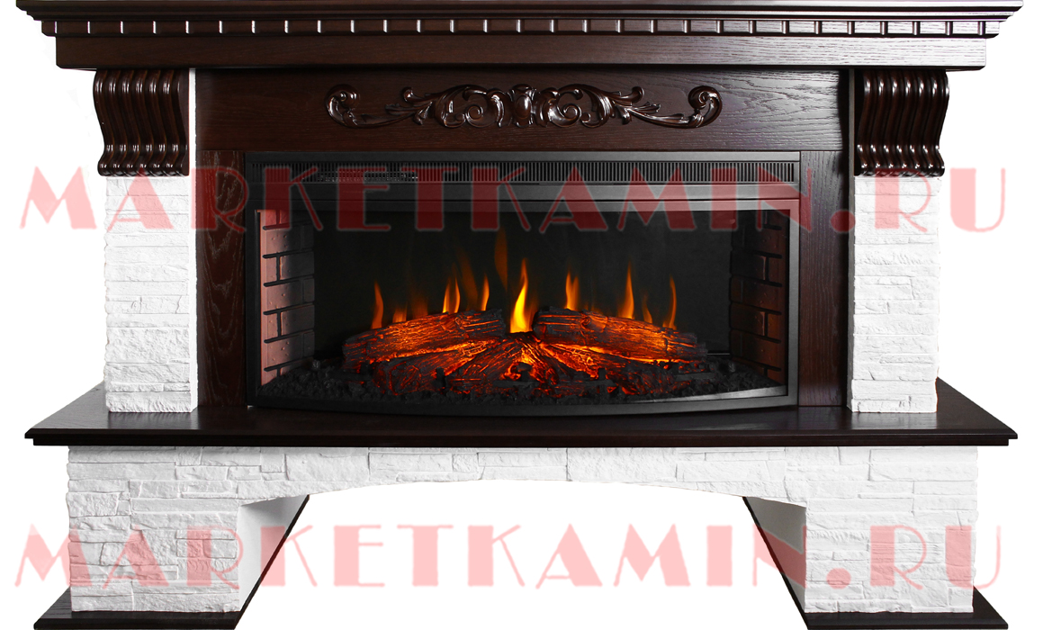 Прованс Гранд (тёмный дуб, белый сланец) большие очаги на выбор Габариты (ШxВxГ): 1900х1200х450 мм