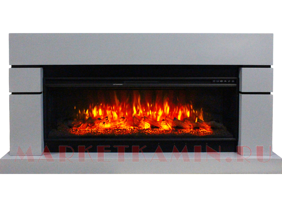 Линдос (серый) Очаги 50″ на выбор (дрова/кристаллы/3D эффект живого пламени) Габариты (ШxВxГ)1800x850x350 мм