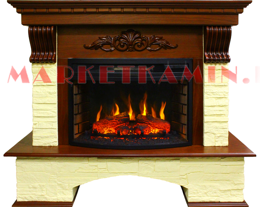 Прованс (орех, светло-бежевый сланец) Очаги и отделка на выбор. Габариты (ШxВxГ): 1200х1050х400 мм