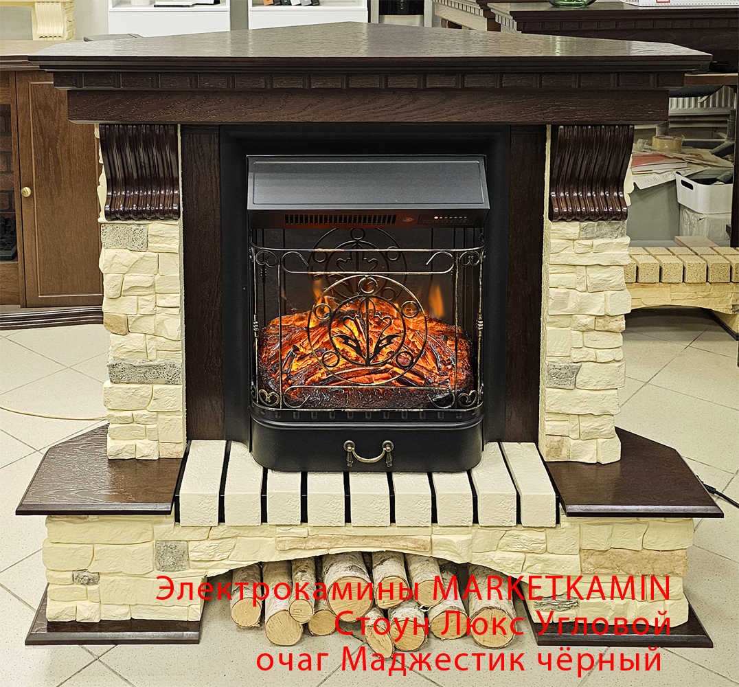 Цена за комплект с очагом Маджестик: 51700 руб. Очаг в английском стиле, без стекла. Топка прикрыта ажурной решёткой.  Рамка по периметру очага может быть в чёрном либо золотом цвете. Эффект пламени такой же как у очага Фобос: пылающие поленья. Реалистичный звук горящих дров.  Работа в декоративном режиме и на обогрев. Мощность обогрева 1-2 кВт. Пульта ДУ нет.