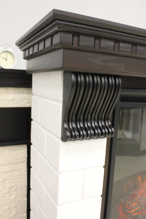 Цена за комплект с очагом Epsilon 33 (Эпсилон) 89700 руб: Эффект пламени: пылающие поленья. Топка закрыта плоским стеклом. Яркость огня регулируется. Звук потрескивающих дров. Имитация кирпичной кладки на боковых стенках очага. Работа в декоративном режиме и с обогревом. Мощность обогрева 1,5 квВт. Температура настраивается. Все функции с пульта ДУ.