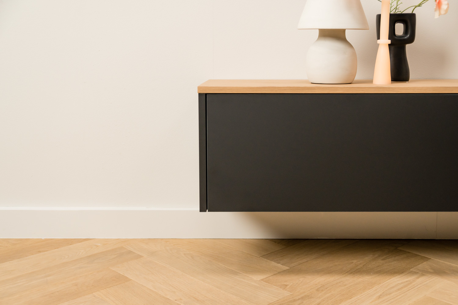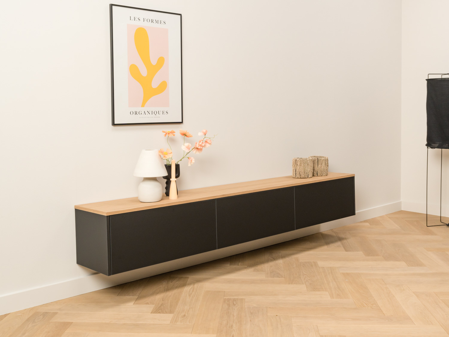 ТВ-тумба № 12 Подвесная с откидными дверками (графит/классический дуб) Цвет и размеры на выбор. Подробности в описании. Габариты (ШxВxГ)1800x330x350 мм