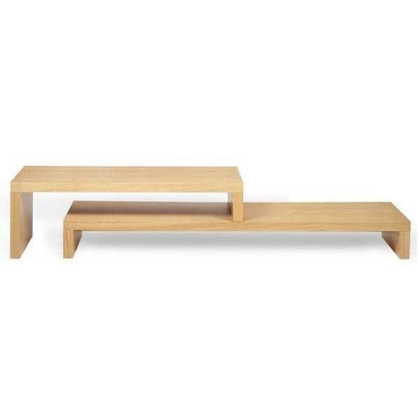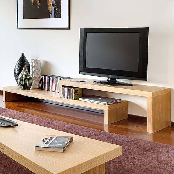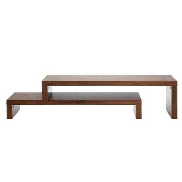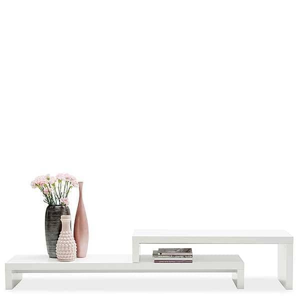 Современная минималистичная тумба, состоящая из двух низких и длинных столиков один из которых ставится короткой ножкой на другой и занимает любое положение, которое вам подходит по дизайну и размеру