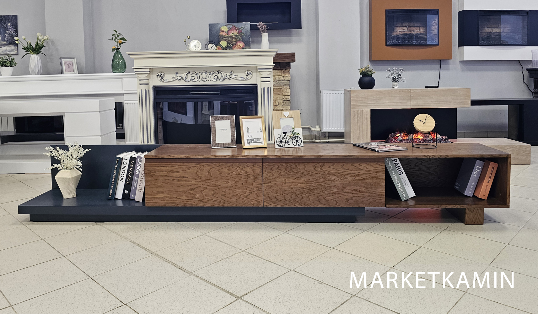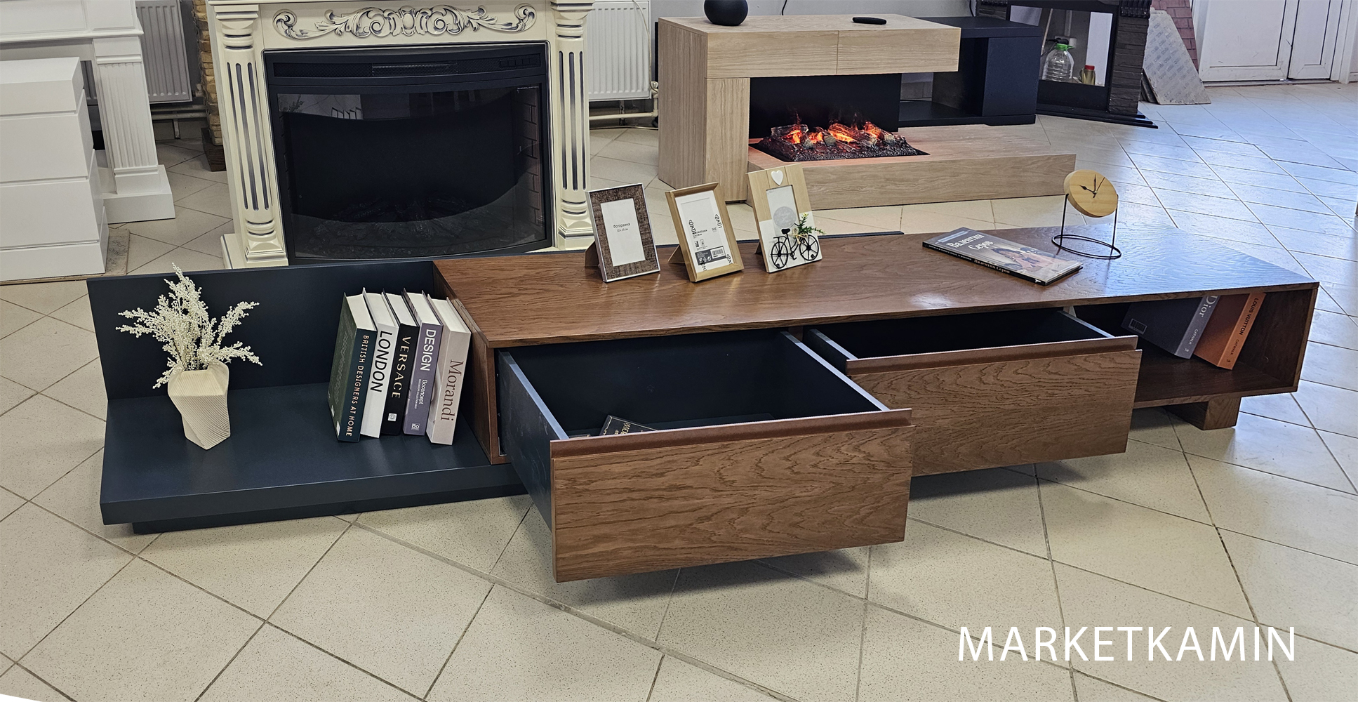 ТВ-тумба № 9 Трансформер с раздвижным корпусом, 2 выдвижных ящика и открытая ниша (орех/серый) Габариты (ШxВxГ)2000-3500x350x400 мм