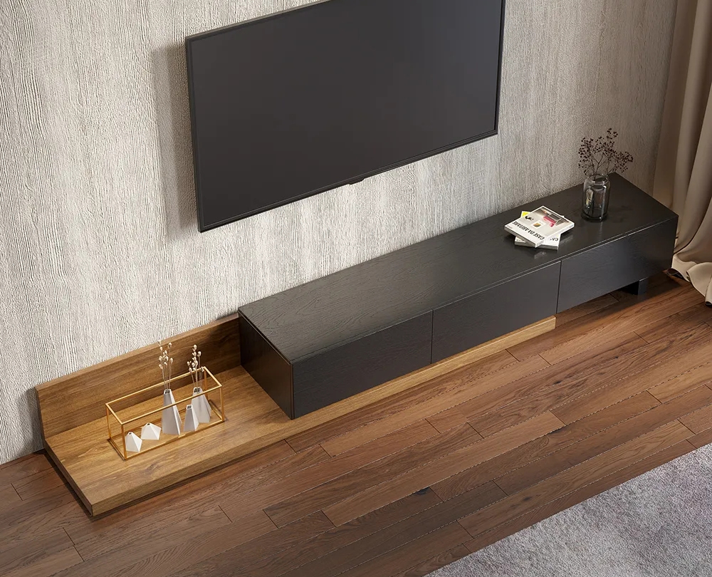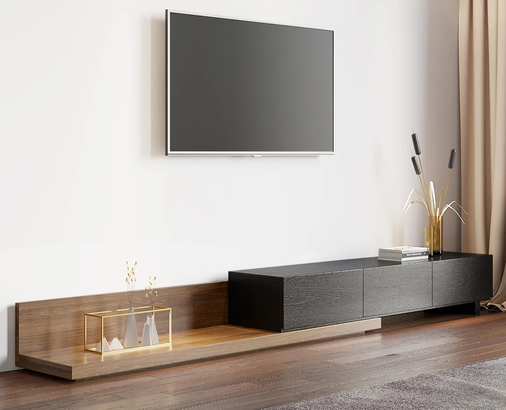 Обладая спокойным внешним видом с ноткой современной привлекательности, эта уникальная подставка для телевизора станет идеальным выбором для вашей зоны развлечений. Благодаря практичному выдвижному дизайну длину тумбы можно гибко регулировать по вашему желанию, а удлиненная часть обеспечивает дополнительное место для размещения ваших книг, семейного портрета, украшений и многого другого. Тумба с тремя просторными выдвижными ящиками для хранения широкого спектра DVD-дисков, видеоигр, пультов дистанционного управления и так далее. Изготовленная из МДФ и обработанного шпона дерева, эта подставка для телевизора в различных цветовых сочетаниях делает ее приятным дополнением к вашему жилому пространству благодаря продуманному балансу моды и функциональности