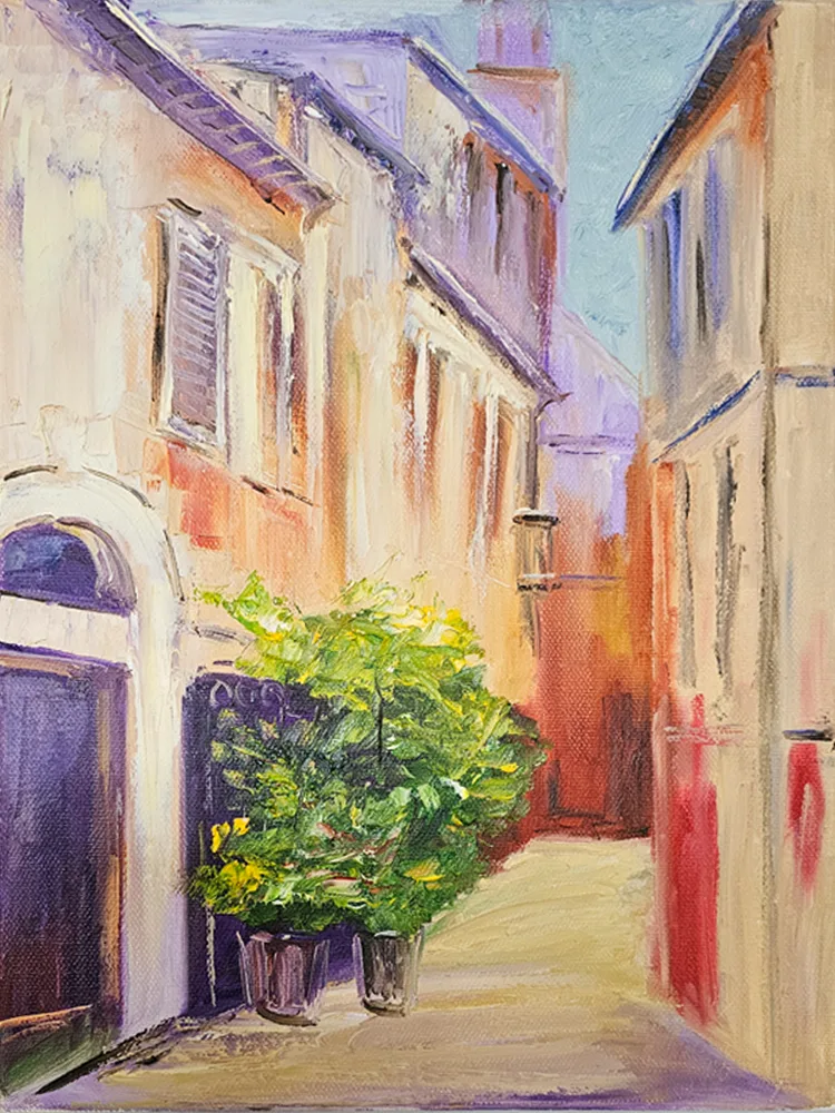 Южная улочка. Картина маслом на холсте. Ручная работа. Без рамы. Размеры: ш 30 см, в 40 см